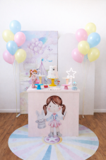 Festa Pocket Circo Rosa usando painel nuvem